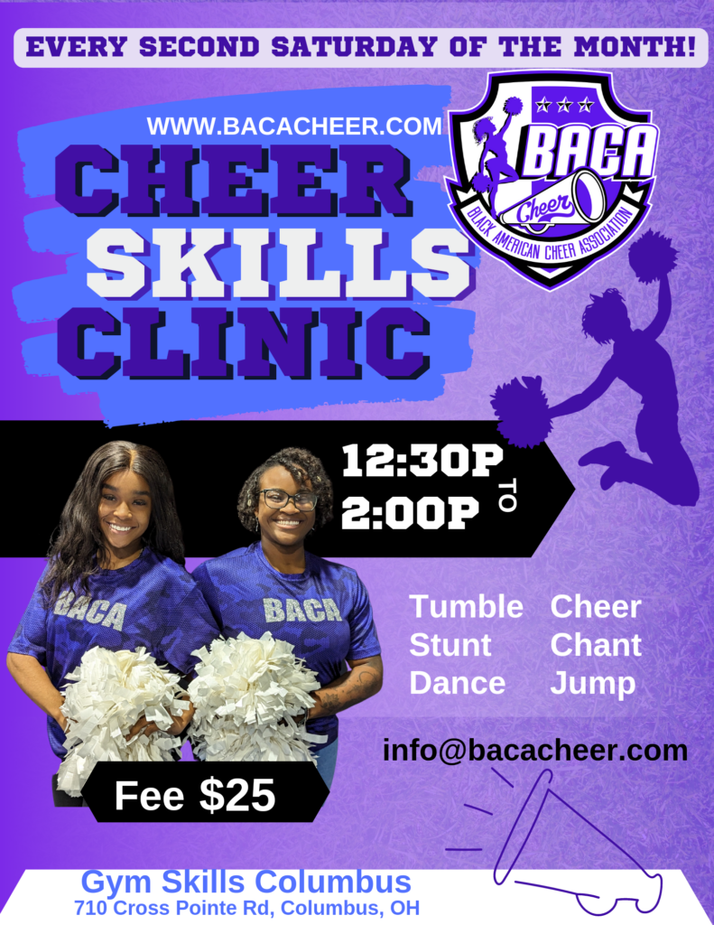 Join us the second Saturday of every month! This clinic athletes will learn beginner to advanced cheer basics and skills including stunts, jumps, and flexibility.