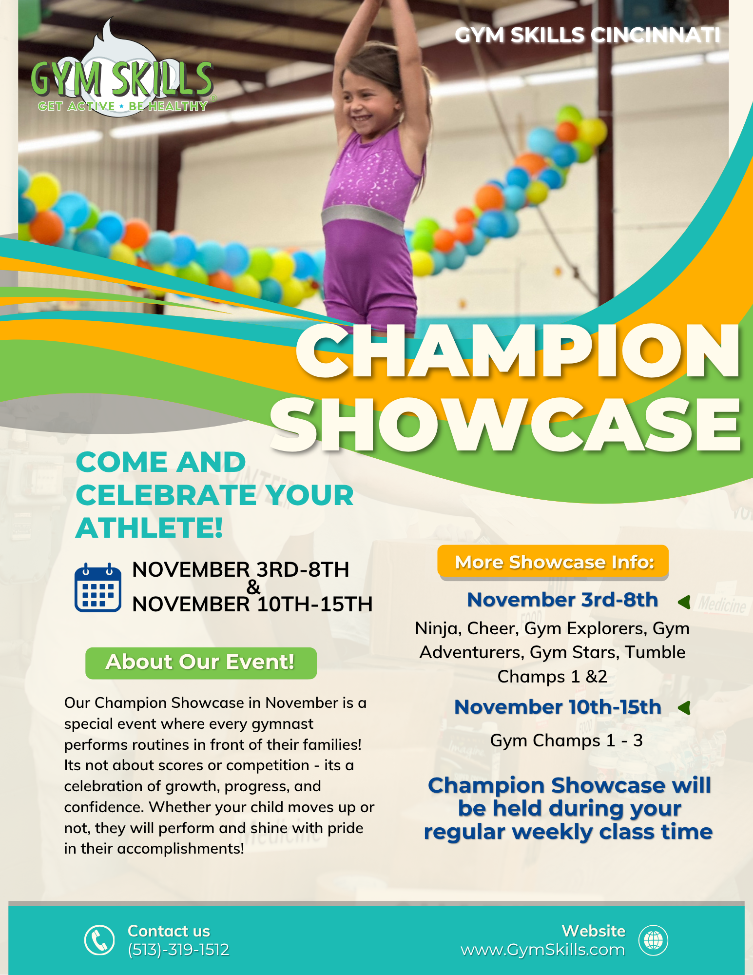 Our Champion Showcase takes place every November during your child’s regular class time.